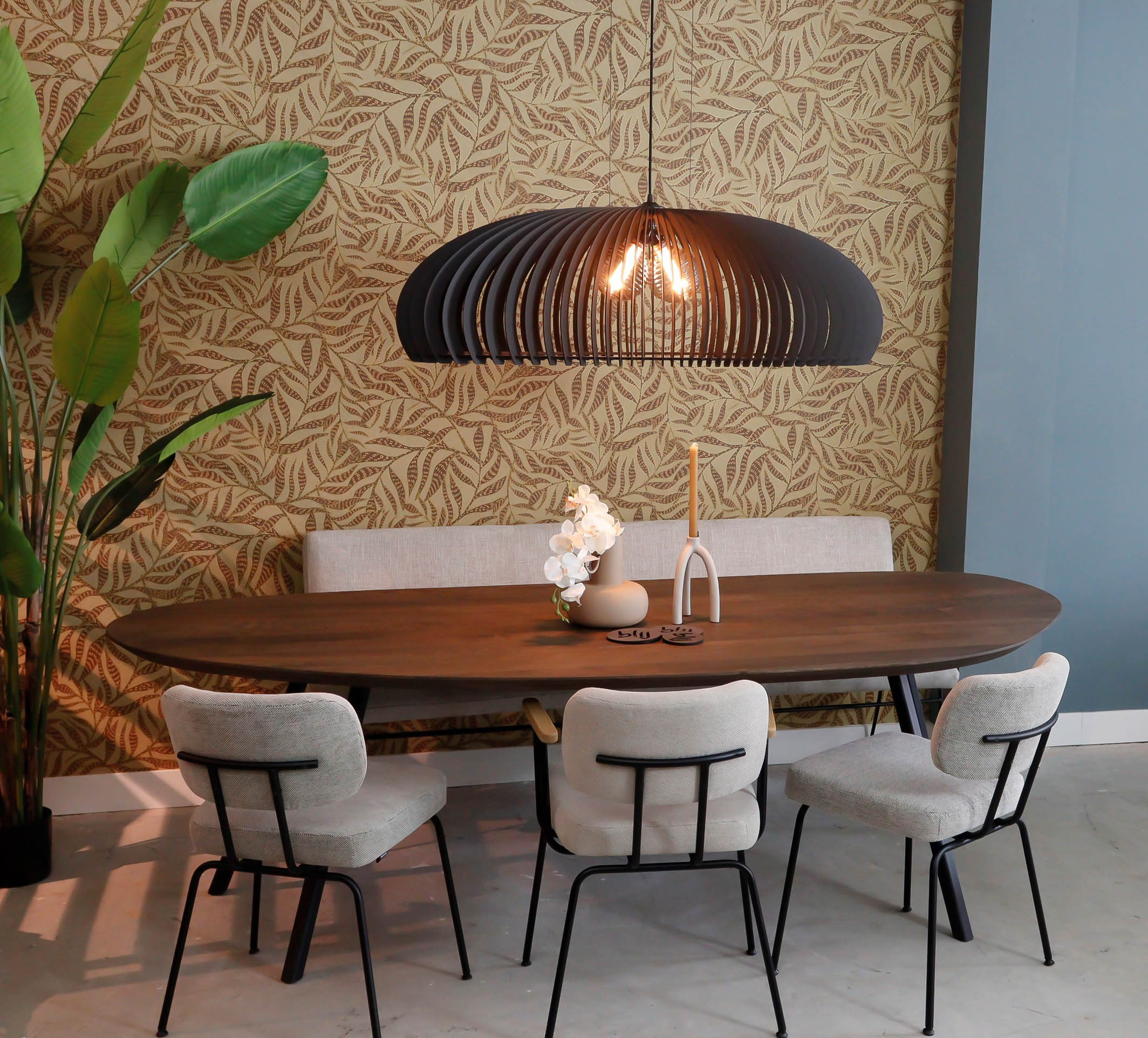 – Kies de juiste hoogte: Hang de lamp boven de eettafel op ongeveer 70-80 cm hoogte. Zo hangt de lamp niet in de weg maar geeft het wel voldoende licht.
